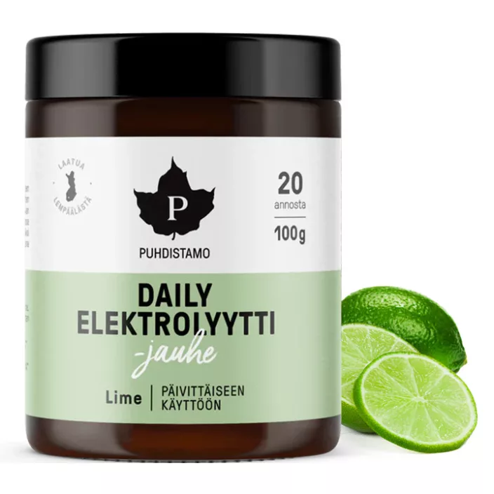 A Puhdistamo's Daily Electrolyte Powder egy nagyon ízletes, friss, lime ízű szomjoltó, amely segít fenntartani a szervezet optimális folyadékegyensúlyát.