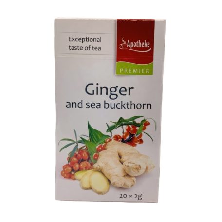 Gyümölcstea gyömbérrel és homoktövissel. Nem tartalmaz fekete teát.