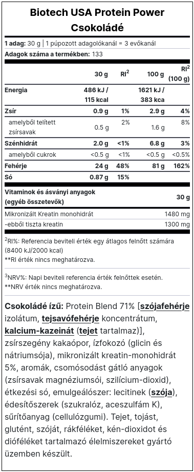 A Protein Power az összes többi BioTechUSA termékhez hasonlóan biztonságos, gondosan válogatott összetevőket tartalmaz.