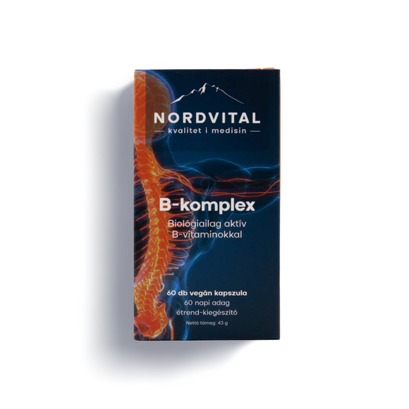 A Nordvital B-komplex formula ideális választás mind a növényi, mind a hagyományos étrendet követők számára. A B-vitaminok teljes családját tartalmazza – B1, B2, B3, B5, B6, B7, B9, B12 és kolin (B8) – így komplex támogatást kínál a mindennapokra. A B-vitaminok hozzájárulnak a normál energiatermelő anyagcseréhez és az idegrendszer megfelelő működéséhez, valamint csökkentik a fáradtságot. Biológiailag aktív, jól hasznosuló formában.