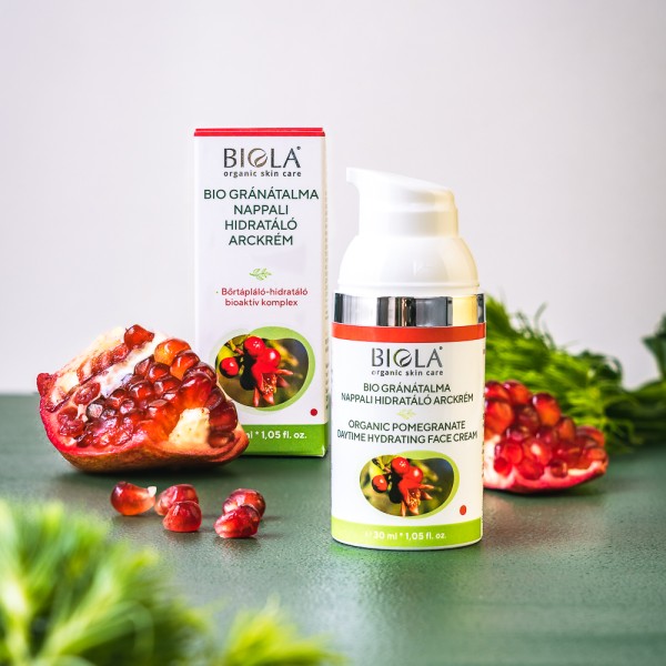 A bio gránátalma nappali hidratáló arckrém termékünk tanúsított biokozmetikum.